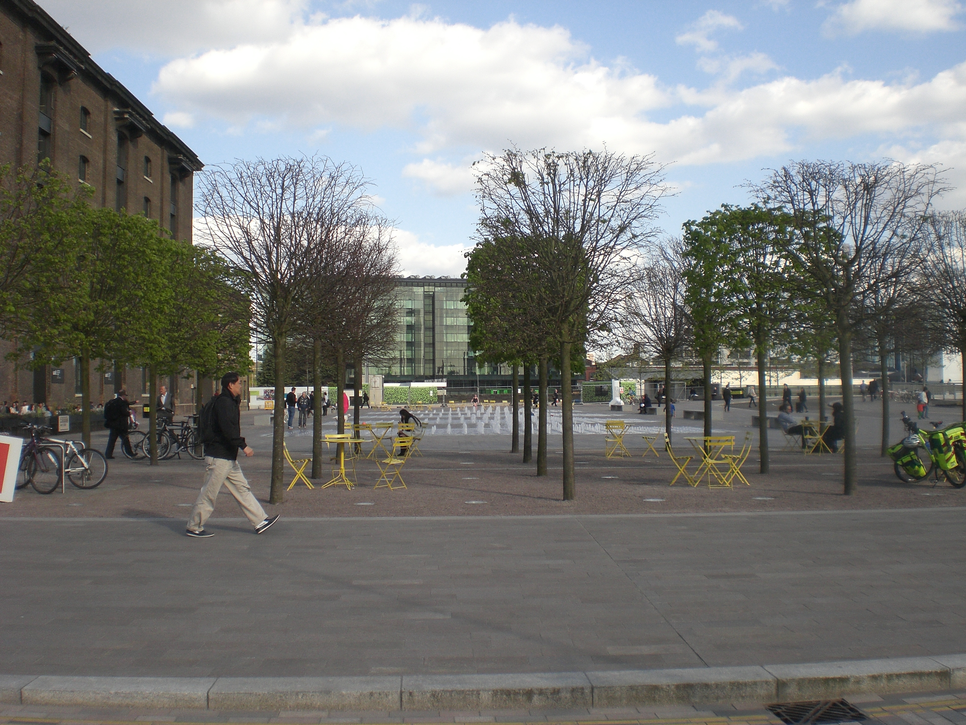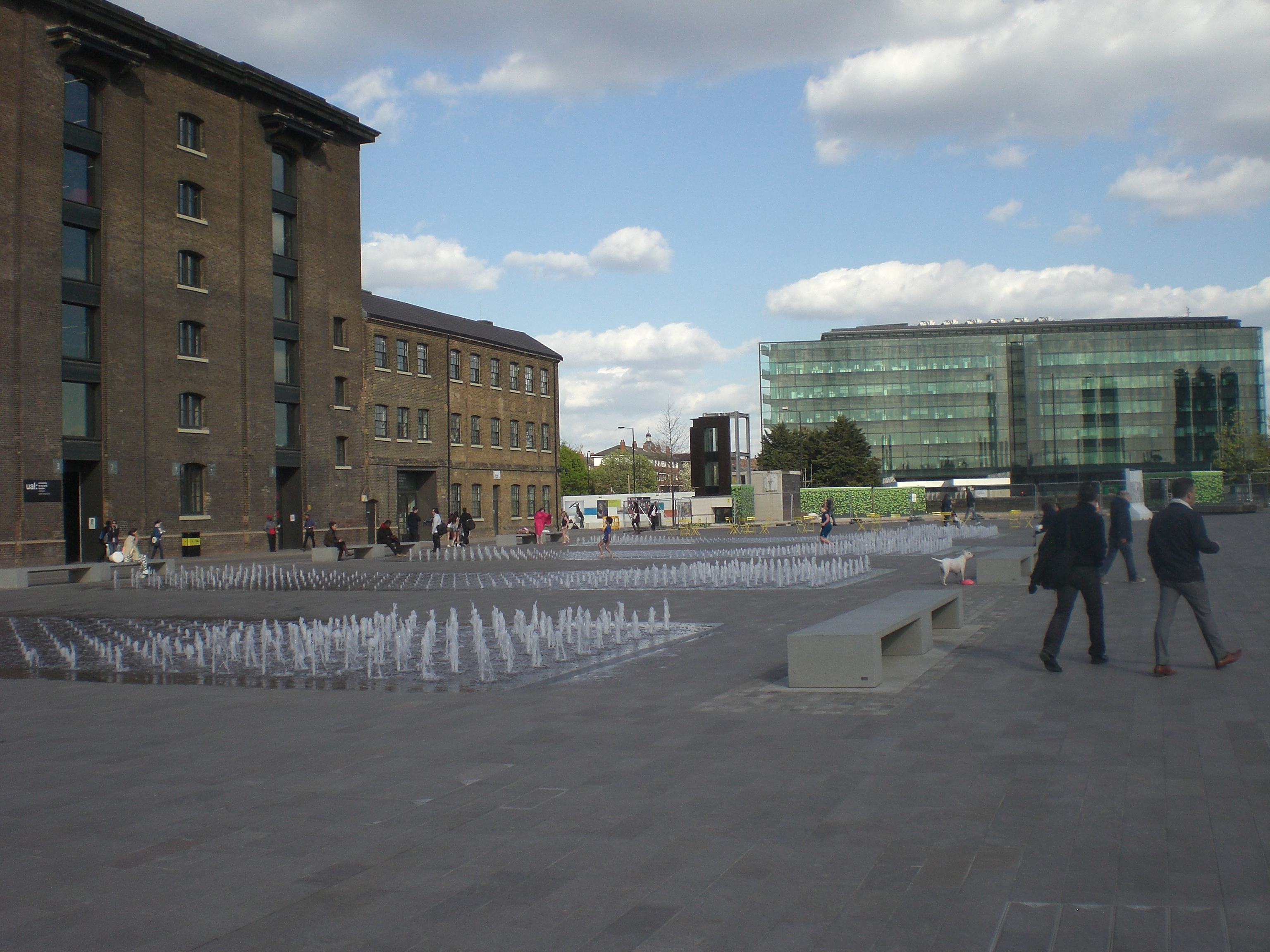 The publicity for Granary Square places emphasis on it as a venue for events and festivals.  No doubt true, and one can easily see that vast, undifferentiated space provides a potentially great staging area, though perhaps not such great viewing of a performance if you’re at the back of the crowd.  But planned, structured events are rarely  day-to-day features.  They are, in general, resource intensive eruptions  of activity, which once complete leave only the space as it was before, as it will be after.