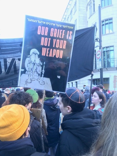 On this march, as in previous demonstrations, people spontaneously came over to thank me for ‘being there’. Telling me it was important I was there – this was the experience shared by others who held banners identifying themselves as Jewish – and how grateful they were. It was heartwarming, embarrassing – but worrying too. For the people who came over were Muslim, and they wanted to affirm they were not antisemitic, and our being at the demonstrations was a sort of testimony that there is no necessary conflict between us. Us, Jews and Muslims.